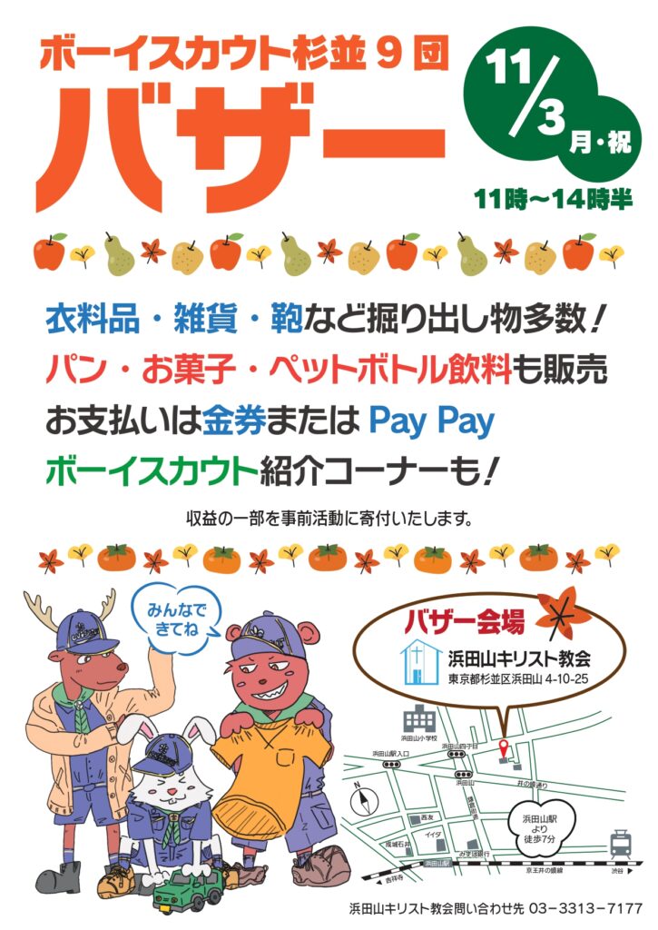 ボーイスカウト主催バザー 11月3日(月・祝)